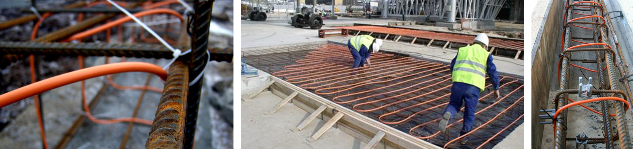 • Кабель крепится к арматуре заливаемого элемента. Глубина от поверхности не должна превышать 20 см, минимальный шаг — 7 см.