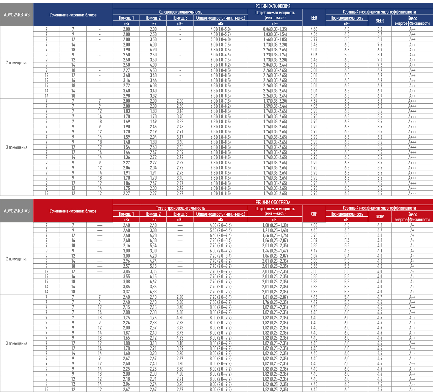 Внутренние блоки одновременно могут работать только в одном режиме — охлаждения или нагрева, но в каждом помещении можно задавать и поддерживать индивидуальные параметры воздуха при помощи индивидуального пульта управления.