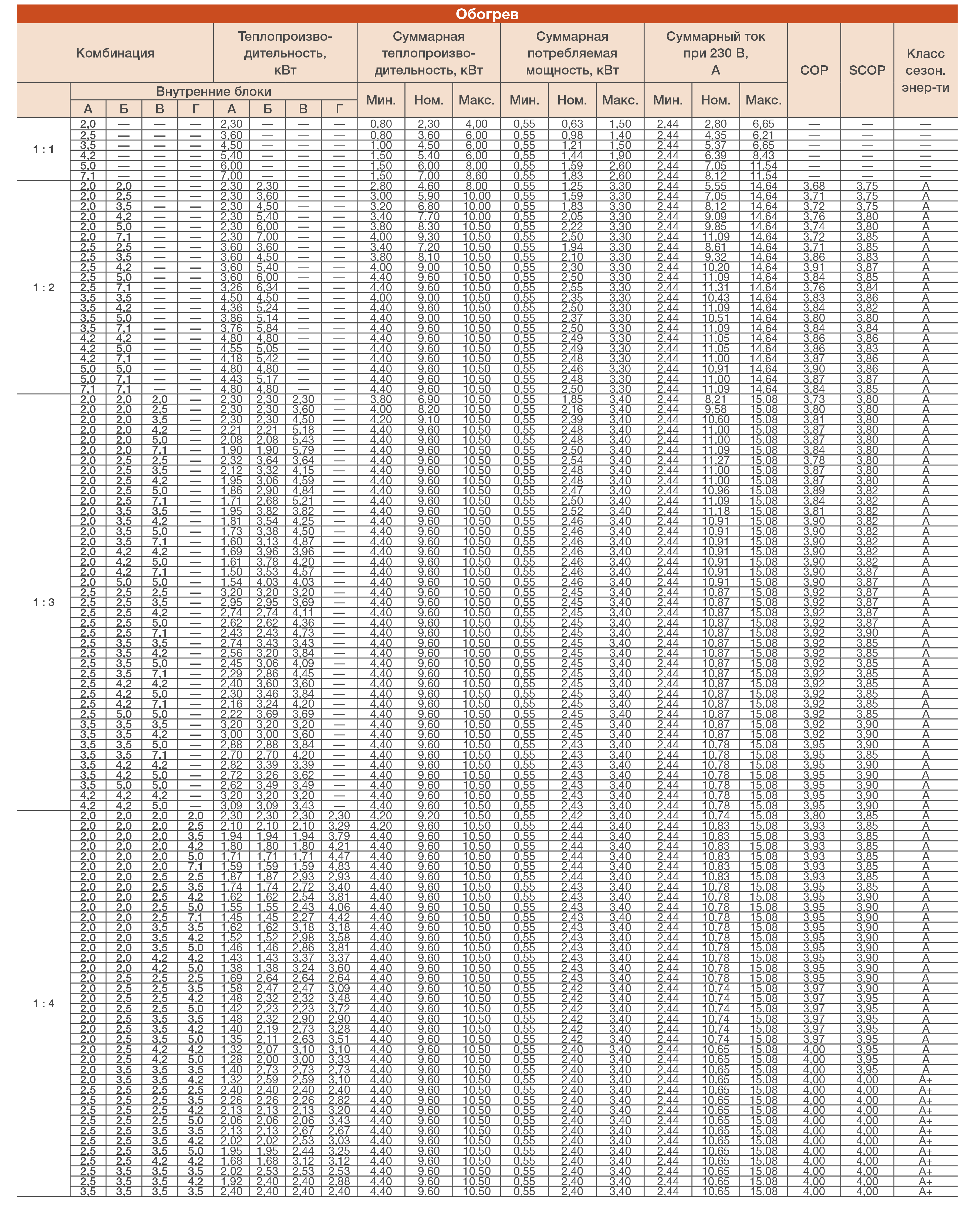 При подключении нескольких внутренних блоков, суммарная производительность которых превышает номинальную мощность наружного блока, при одновременной эксплуатации каждый из них будет работать со сниженной производительностью. Такой вариант подключения допускается в случае, когда внутренние блоки используются не одновременно (например, ночью – спальня, днем – гостиная).