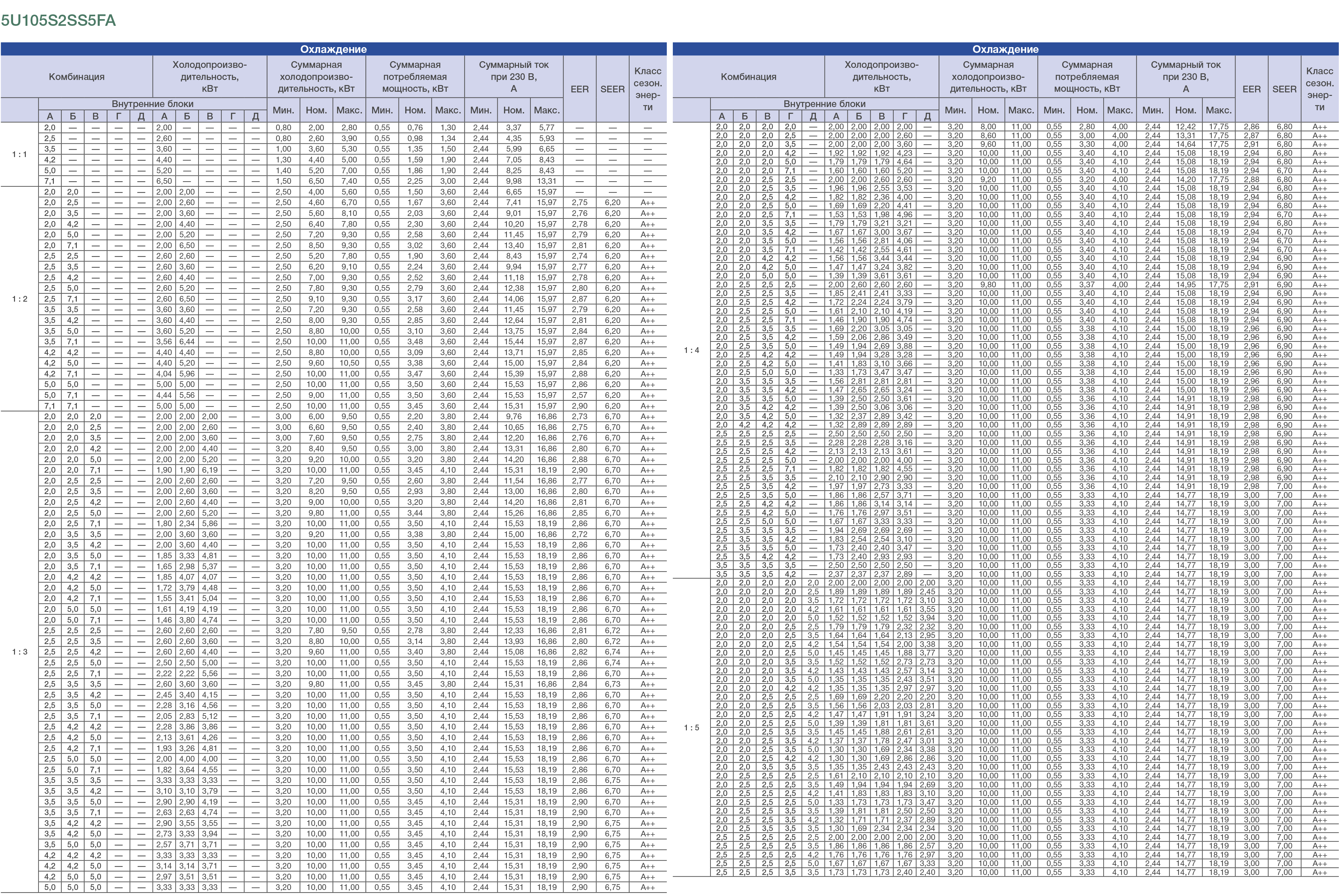 Рассчитан на подключение 5 внутренних блоков. Подобрать внутренние блоки для данной модели можно здесь.