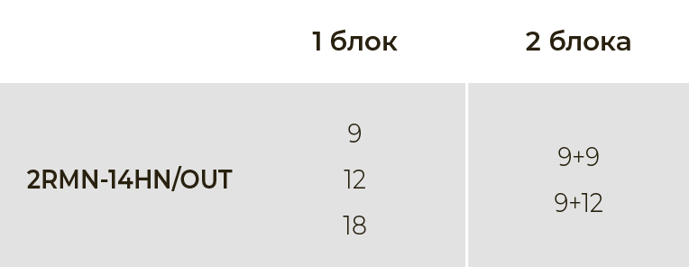 Общая площадь охлаждения до 40 кв.м, комбинации внутренних блоков подбираются индивидуально.