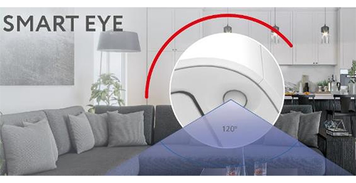 - Функция SMART EYE — В стандартной комплектации кондиционеры оснащены сканирующим пространство ИК-сенсором, который определяет местонахождение человека и направляет потоки воздуха на него или от него (в зависимости от выбранной настройки) — технология SMART EYE.
