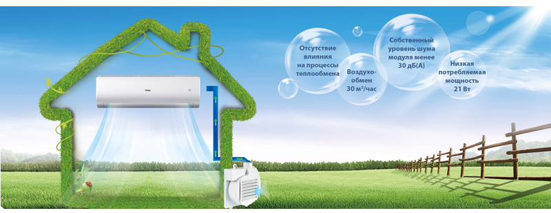 • Возможность установки модуля O2 FRESH (опционально) — модуль обеспечивает приток воздуха с улицы объемом 30 м³/час. Монтируется на поверхность наружного блока или на стену, на которой он закреплен.