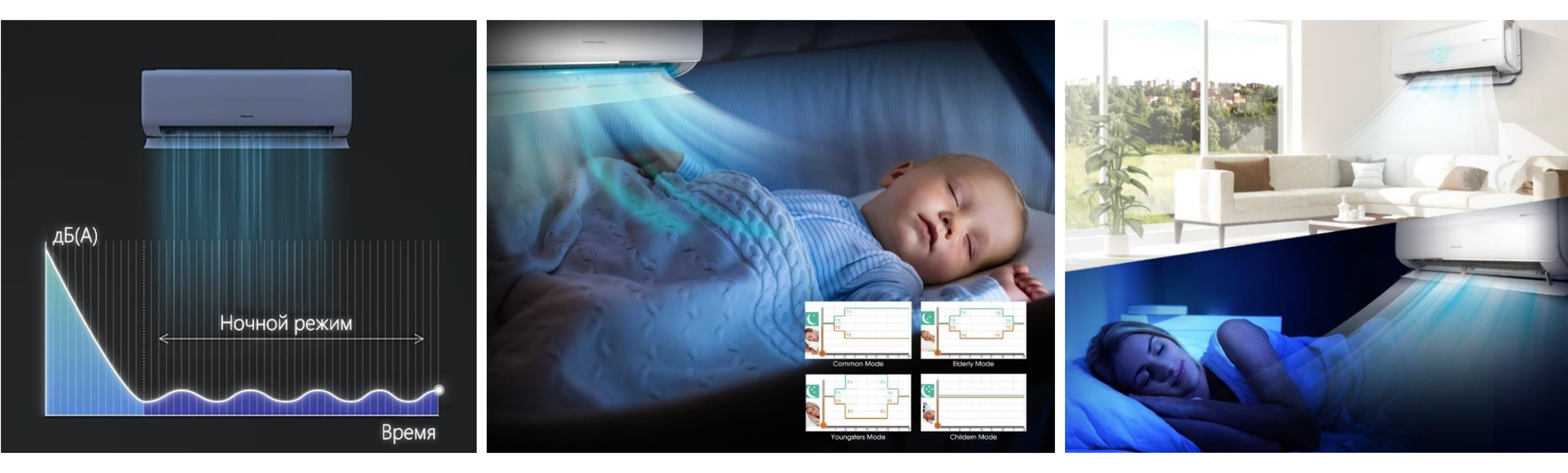 • В режиме Quiet работа кондиционера практически не слышна, уровень шума не превышает 18 дБ.