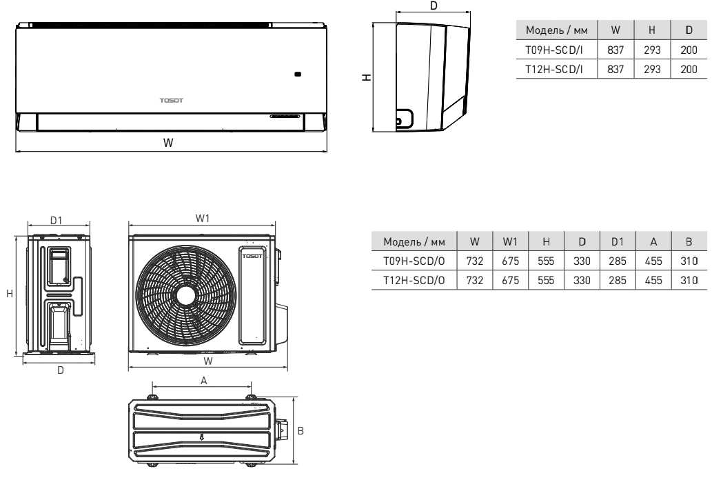 Кондиционер инверторный Tosot T09H-SCD/I/T09H-SCD/O