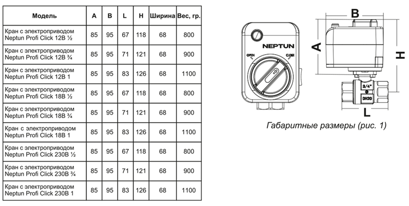 Шаровой кран с электроприводом Neptun Bugatti Click 12В 3/4"