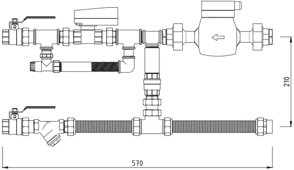 Смесительный узел является единой конструкцией, включающей в себя циркуляционный насос и двухходовой клапан с сервоприводом. Подающая магистраль оборудована шаровым краном и сетчатым фильтром. Обратная магистраль включает циркуляционный насос, обратный клапан, двухходовой клапан с сервоприводом, балансировочный клапан регулирующего байпаса и запорные шаровые краны.
