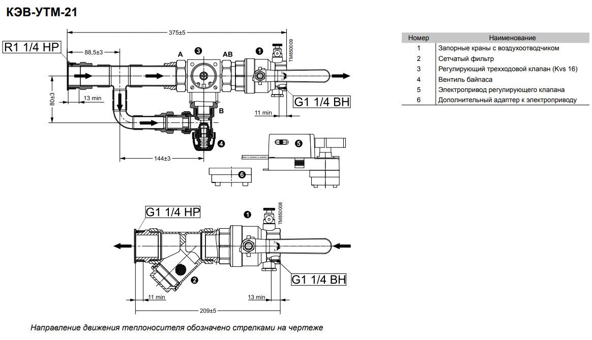 • При полностью закрытом клапане, регулирующий байпас обеспечивает постоянный проход воды, во избежание замерзания теплоносителя.