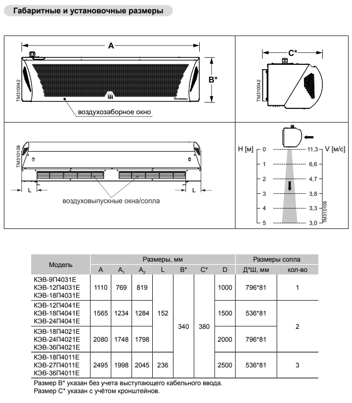 • Возможность управления группой завес с одного пульта (см. паспорт изделия).
