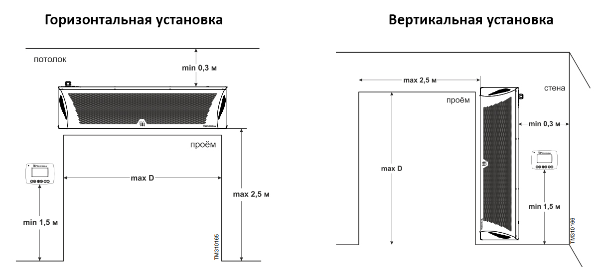 Тепловая завеса смесительного типа, предназначена для защиты помещений от прямого контакта с наружным воздухом через открытые двери в холодный период времени. Устанавливается внутри помещения, горизонтально над проемом или вертикально, сбоку от него, как можно ближе к краю. При большой ширине проема можно располагать сразу несколько завес вплотную друг к другу и управлять ими с одного пульта. Подходит для установки в складских помещениях, гаражах, гостиницах, кафе, торговых павильонах и др.