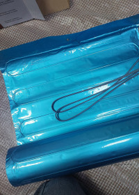 - Простой монтаж — мат Аlumia достаточно просто разложить и подключить к терморегулятору. Не требует стяжки или плиточного клея, ламинат/паркетную доску можно укладывать прямо на нагревательный мат. В случае с линолеумом и ковролином — между матом и покрытием укладывается лист фанеры 6 мм.