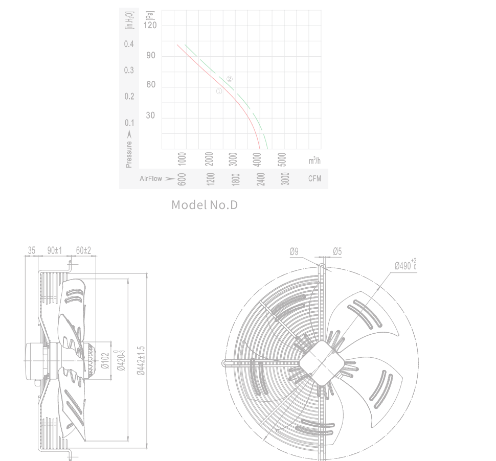 • Надежность и долговечность: Двигатель с внешним ротором имеет степень защиты IP54, что гарантирует его устойчивость к пыли и влаге, а широкий диапазон рабочих температур (-30°C до +60°C) обеспечивает бесперебойную работу в сложных условиях.