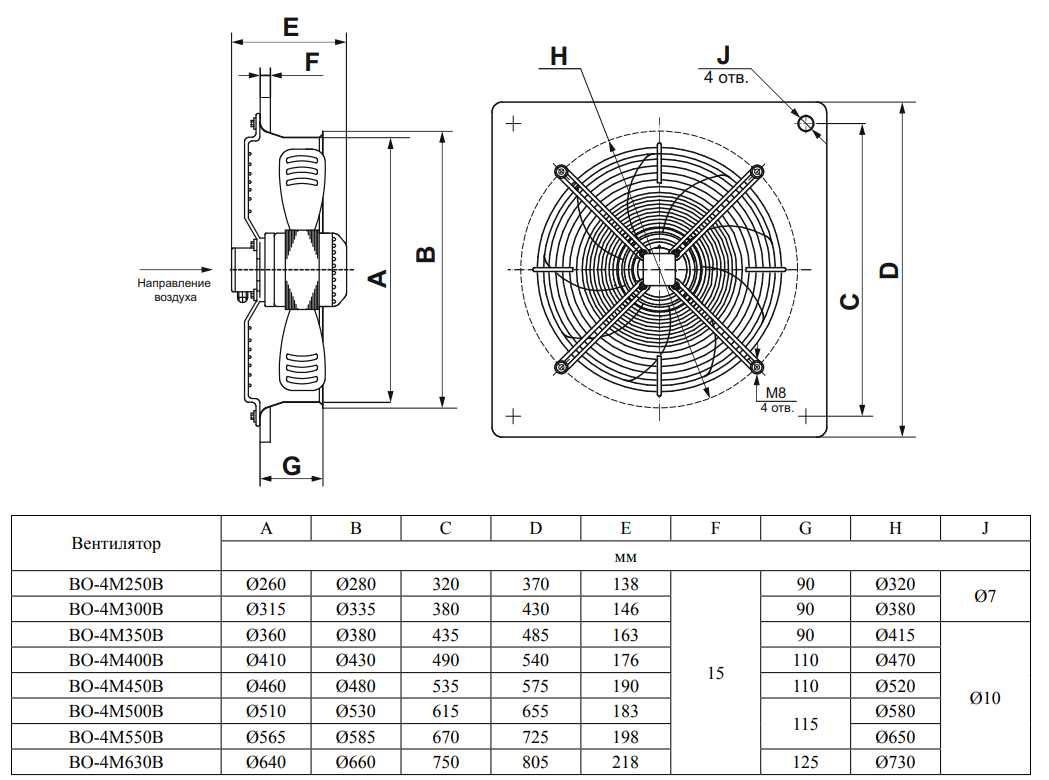 Стальной корпус осевого вентилятора типа В, к которому крепится защитно-декоративная решетка, имеет квадратное сечение и устанавливается на стене или другом месте монтажа с помощью крепежных изделий.