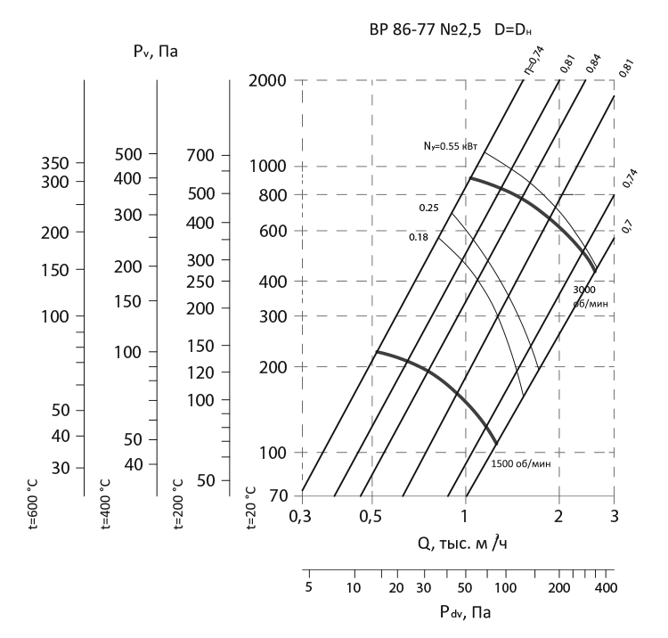 Радиальный вентилятор низкого давления ВР 86-77 / №2,5 / 0,55 кВт / 3000 об./мин. / Прав / 0°