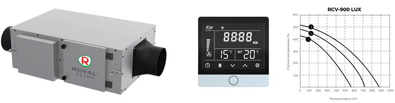 Приточная вентиляционная установка Royal Clima RCV-900 LUX с нагревателем EH-6000 серия VENTO